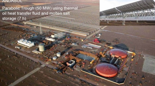 當(dāng)前正在發(fā)展的技術(shù)方向?yàn)橹苯诱羝―SG)技術(shù)。典型的PTC發(fā)電廠動(dòng)力范圍30-150MW,工作溫度約為400°C。如圖所示為目前世界上太陽能槽式發(fā)電站列表。