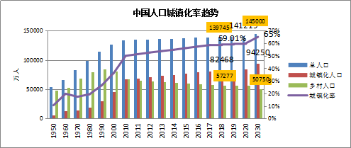 我于2018年8月份去崇禮參加《財經》雜志的論壇,房地產大鱷任志強、小城鎮發展中心的李鐵、《財經》雜志的總編王博明有一個論壇,當時他們吵的很厲害,我聽了以后,我的想法是有很多的認識我們必須要改變了,特別是對城市化的認識。我們為什么要搞城市化?城市化到底怎么來的?當你處于的時代發生變化的時候,你所追求的城市化,它的含義也會發生變化。講到中國城市化率,從1978年17.9%,到現在是58.5%,城鎮常住人口從1.7億發展到8.1億,城市的數量從193個發展到今天的657個,很有成效。到今年年初我們是13.9億人口,農村人口仍有5.73億。這5.73億按照一個農村家庭大概在2.7到2.8人計算,算下來是2億個家庭。他們預計到2030年,中國城鎮化率達到70%,人口14.5億,仍有4.35億人。也有觀點完全不同,有些人認為根本沒有必要追求這么高的目標。