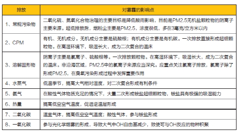 燃煤電廠污染物排放或水汽和熱量排放中,對霧霾形成有影響的因素,歸納如下。