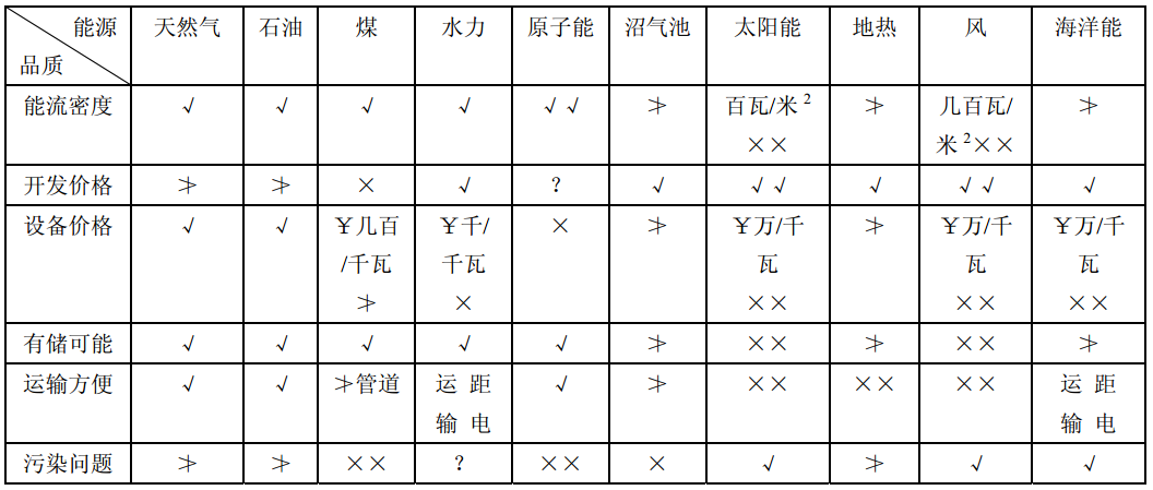 以上大體比較了各種能源在各方面的優缺點,在開發能源時,需要很好地綜合考慮。