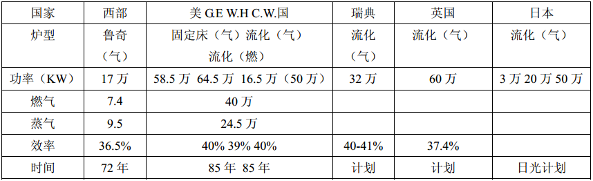 表4 燃煤聯合循環的發展情況