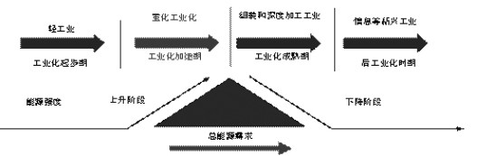 圖1 能源強(qiáng)度與工業(yè)化不同時(shí)期的關(guān)系