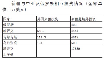 新疆從周邊各國吸引外資發展勢頭看好。以哈薩克斯坦為代表的中亞及俄羅斯經濟已初步具備對外投資的能力。截止2007年,中亞在新疆投資55個項目,合同外資7100萬美元。其中哈薩克斯坦在新疆共投資42家企業,合同外資總額6855萬美元。