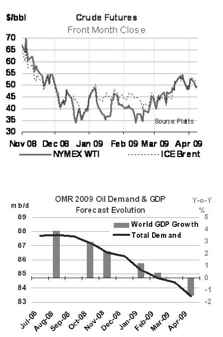 目前全球經濟形勢已經出現了放緩,I E A每月都會下調需求預測數字,現在是8 4 30萬桶每天的水平,同時我們也下調了全球的G D P 預測數字, 我們認為2009年G DP下滑1.4%。現在這個現象其實有個特點,這是從1994年以來非O E C D需求開始出現下降,現在是下滑了0.1%。到4月O E C D國家需求出現大幅度下滑,但是中國、印度這些非O E C D的國家需求還是上升的。但是,4月出現一個反轉,就是非O E C D國家需求出現了下滑。這告訴我們,經濟危機對于所有人來講都是非常嚴重的,包括對于中國也是一樣。我們預測中國需求會下降0.8%,中國G D P增長還會是維持在6.3%,這跟政府目標也是一致的。我們也希望能夠看到各個國家的經濟刺激計劃都能夠取得成功,使得經濟實現復蘇,但是我們還是要采取一種觀望的態度,來看一看到底會怎么樣。我們想看到美國的經濟刺激計劃有什么樣的效果,我們還是要觀察到底對經濟有沒有實質性的影響。