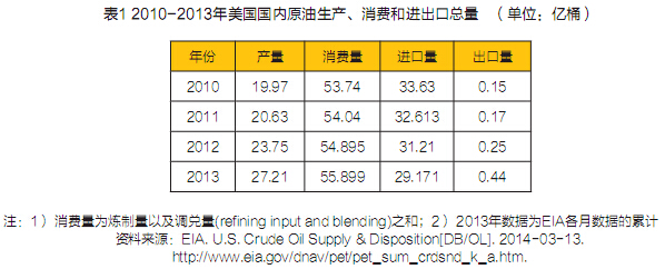 美國(guó)國(guó)內(nèi)石油和天然氣產(chǎn)量持續(xù)大幅增長(zhǎng)正在改變美國(guó)的能源格局,給美國(guó)帶來(lái)廣泛的經(jīng)濟(jì)、安全和地緣政治影響力。2013年美國(guó)原油產(chǎn)量達(dá)25年高點(diǎn),在凈進(jìn)口量和消費(fèi)量相對(duì)減少的情況下,許多美國(guó)國(guó)內(nèi)石油生產(chǎn)企業(yè)正在考慮開(kāi)辟全球市場(chǎng),并呼吁政府取消美國(guó)原油出口禁令。