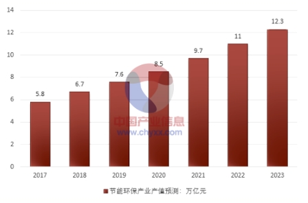2017-2023年我國(guó)節(jié)能環(huán)保產(chǎn)業(yè)產(chǎn)值預(yù)測(cè)(單位:萬(wàn)億元)