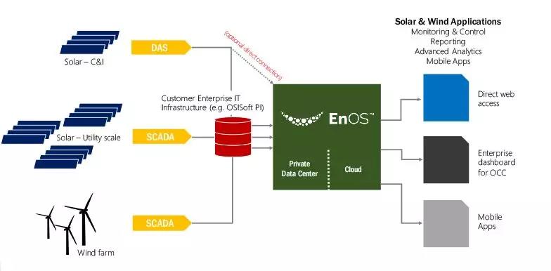 這個模式中比較著名的平臺是能源物聯網平臺EnOS,它為了解決新的能源系統分散性強、單點規模小以及間歇性明顯而建立的,我們已經不能再用傳統管理大規模的工業化、自動化的手段去管理分布式的新能源電力系統,能源物聯網平臺包含風能、太陽能、傳統發電,平臺實現價值的主要方式是依靠跨領域的協同。