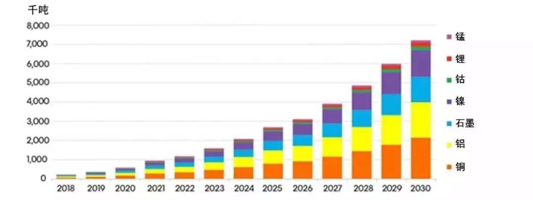圖2 乘用電動(dòng)汽車鋰離子電池組的金屬和材料需求