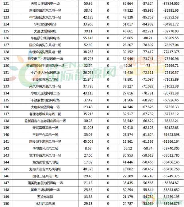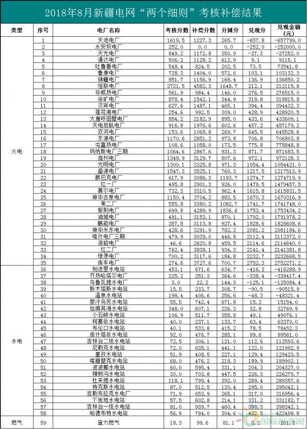 2018年8月新疆電網“兩個細則”考核補償結果(風電)