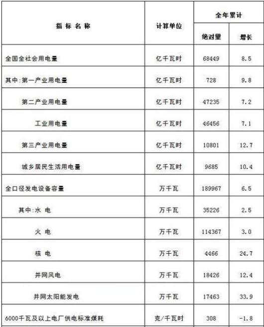 1月18日,國家能源局發(fā)布2018年全社會用電量等數(shù)據(jù)。2018年,全社會用電量68449億千瓦時(shí),同比增長8.5%。創(chuàng)2012年以來增速新高。