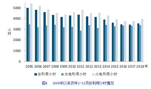 1-11月份,全國發電設備累計平均利用小時3518小時,比上年同期增加103小時。