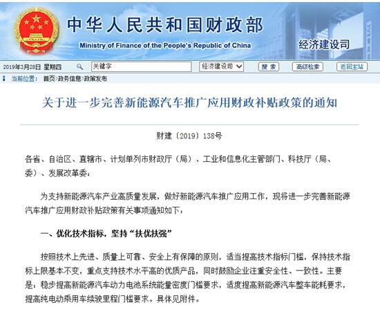 車輪據(jù)悉,財政部、工信部、發(fā)改委、科技部四部于3月26日聯(lián)合發(fā)布《關于進一步完善新能源汽車推廣應用財政補貼政策的通知》,《通知》通過優(yōu)化技術指標堅持"扶優(yōu)扶強"、完善補貼標準分階段釋放壓力、完善清算制度提高資金效益、營造公平環(huán)境促進消費使用、強化質(zhì)量監(jiān)管確保車輛安全等多方位支持新能源汽車產(chǎn)業(yè)高質(zhì)量的發(fā)展。