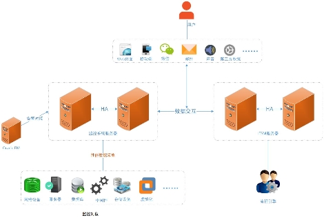 ? 服務(wù)平臺,包括人工服務(wù)臺、運維門戶網(wǎng)站、移動端應(yīng)用、智能運維引擎和多用戶支持引擎。