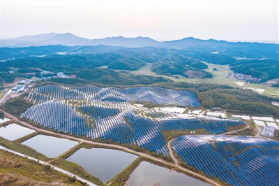 圖為航拍的林光互補(bǔ)光伏項(xiàng)目全貌。視覺中國供圖