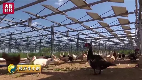 光伏板可以遮陽(yáng),讓沙漠里的水分減少損失,養(yǎng)殖的家禽。