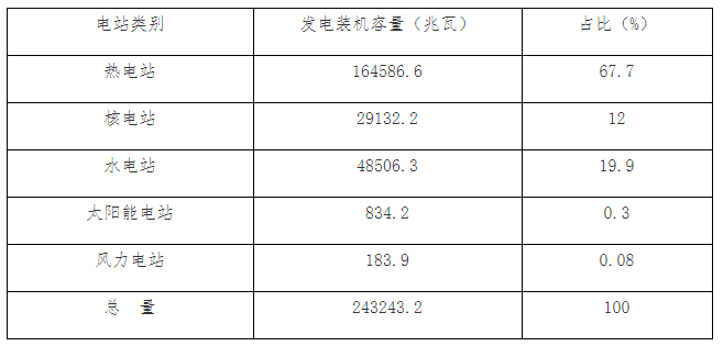 表一:俄羅斯發電裝機容量分類統計表