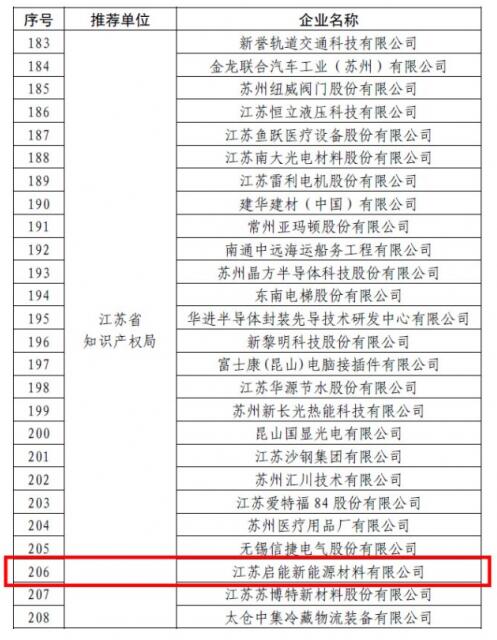 11月25日,根據(jù)國(guó)家知識(shí)產(chǎn)權(quán)局頒布的(國(guó)知辦函運(yùn)字〔2019〕604號(hào))文件,江蘇啟能新能源材料有限公司(以下簡(jiǎn)稱“啟能新能源”)被評(píng)為“國(guó)家知識(shí)產(chǎn)權(quán)優(yōu)勢(shì)企業(yè)”。