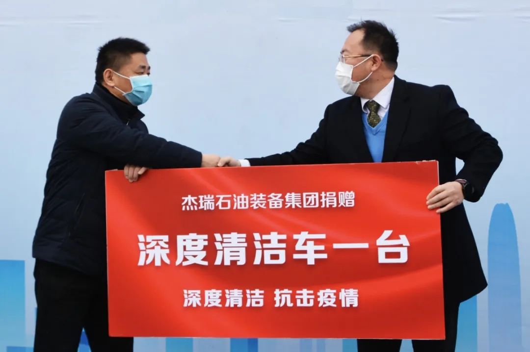 2月26日上午,杰瑞集團向濟南市市中區人民政府捐贈一臺深度清潔車,濟南市市中區副區長殷繼明先生、杰瑞集團副總裁謝猛先生出席此次捐贈儀式,攜手一道堅決打贏這場新型冠狀病毒防控阻擊戰“疫”。