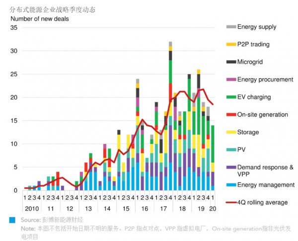 BNEF的獨家數據庫“分布式能源企業戰略動態追蹤工具(DecentralizedEnergyStrategyMapper)”涵蓋了50余家企業在分布式能源產品和服務方面的動態。報告全文呈現了2020年第一季度的數據更新,同時提供深入分析,通過數據發現分布式能源企業戰略的發展趨勢,本文為結論摘要。