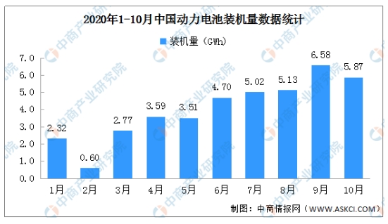 數據顯示,2020年10月,我國動力電池裝車量5.9GWh,同比上升44.0%,環比下降10.8%,同比繼續保持增長趨勢。