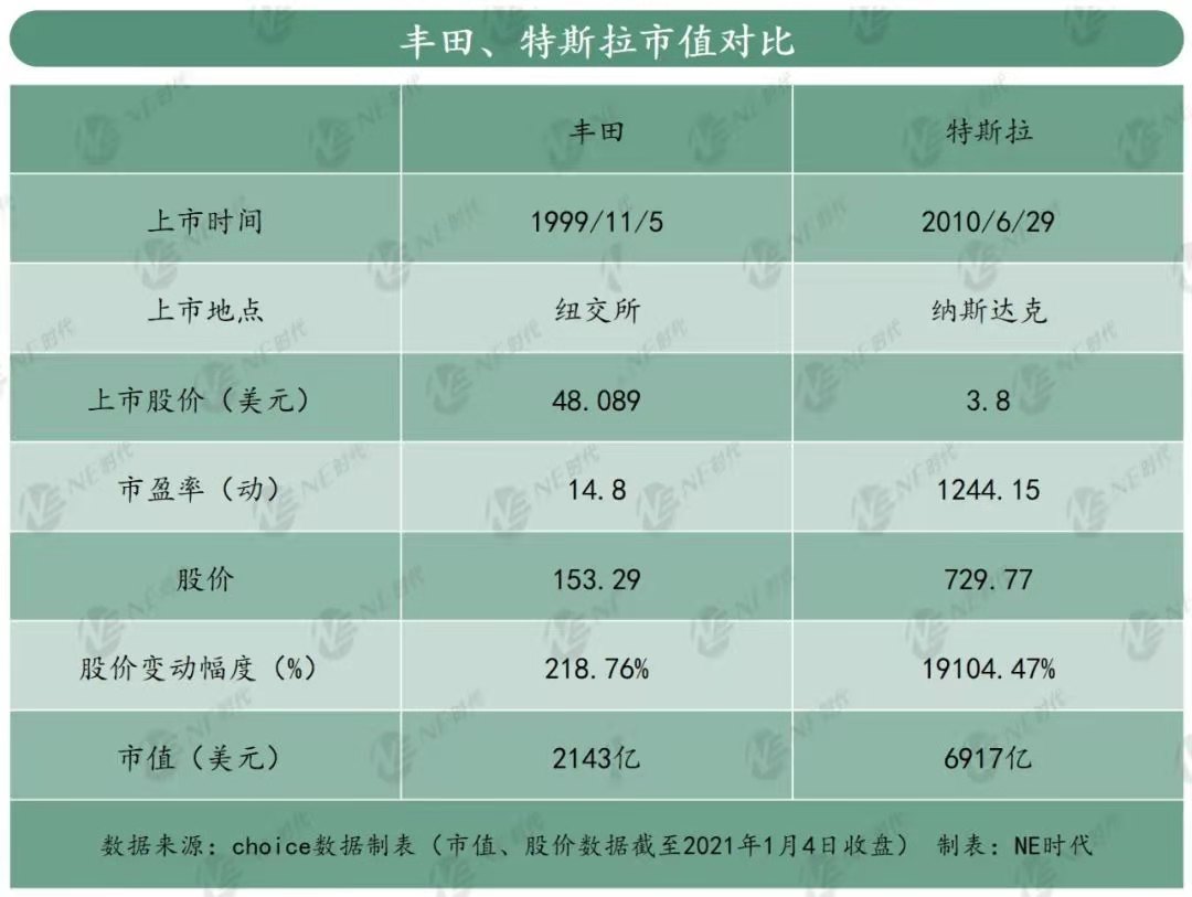 特斯拉上市不到10年,股價翻了近191倍,市值達6917億美元,遠超上市逾20年的豐田。