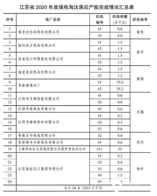 2020年度江蘇省電力行業(yè)淘汰落后產(chǎn)能公示