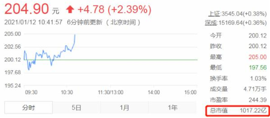 1月11日,北方華創科技集團股份有限公司(以下簡稱“北方華創”)股價再度突破200元,達到201.45元,市值突破千億大關。成為首個市值突破千億的光伏設備企業,同時也是第四個市值突破千億的光伏相關企業。
