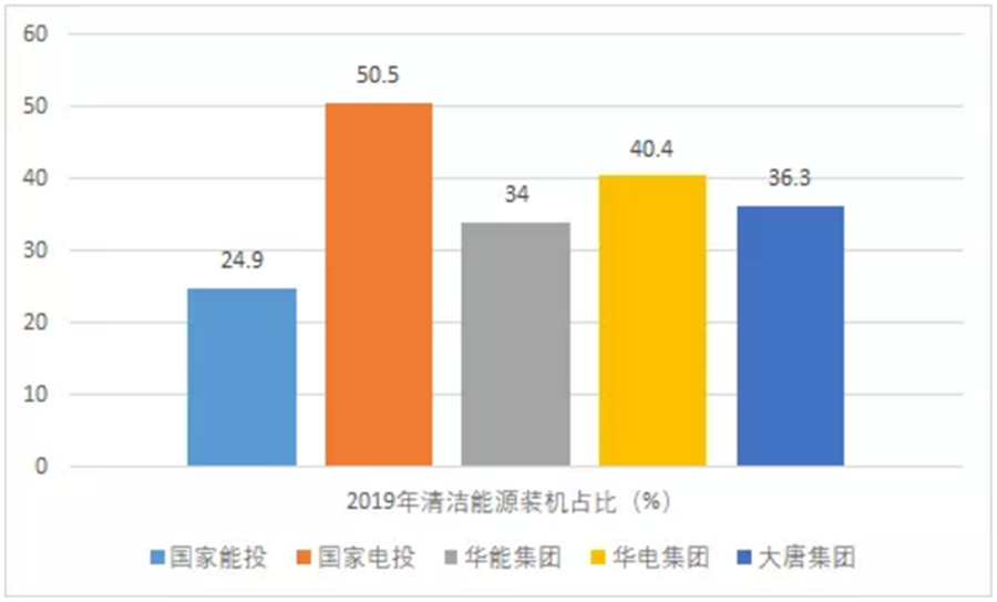 但國家電投的底子比華能集團好得多。截至2019年底,華能集團的清潔能源占比僅為34%,而國家電投已超過50%。