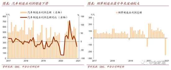 煙草制品業(yè)虧損較大,營業(yè)收入連續(xù)3個(gè)月同比負(fù)增長。12月,煙草制品業(yè)虧損253億元,營業(yè)收入同比下降1.3%。該行業(yè)過去幾年12月盈虧波動(dòng)較大,可能也有年度核算和月度核算之間存在差異的因素。