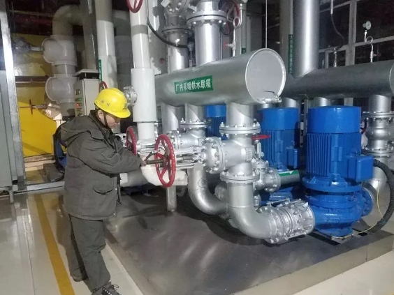 砂巖回灌技術(shù)的整個供水與回水過程采用閉式循環(huán)系統(tǒng),只取地下巖層的熱量,不取地下水。為利用好來之不易的地?zé)豳Y源,明匯公司創(chuàng)新設(shè)計了三級循環(huán)模式,一步步將地?zé)豳Y源吃干榨凈。抽取的地下水約80度,高溫段的第一級熱量將供給暖氣片,水溫下降后供給第二級的地暖管使用,最后用熱泵提取熱量到水溫15度左右才回灌。三級循環(huán)最大限度地利用了地下水的熱量,解決了不同層級的供暖需求,實現(xiàn)效益最大化。