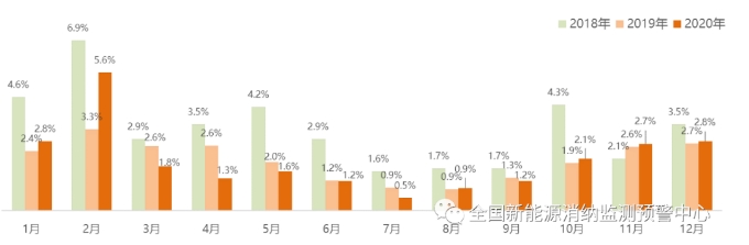 2020年全國棄風率月度變化情況