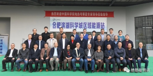 中國科學(xué)院學(xué)部咨詢評議項目“長三角地區(qū)地?zé)豳Y源及其綜合利用研究”課題總負(fù)責(zé)人中國科學(xué)院院士、中國地?zé)岙a(chǎn)業(yè)聯(lián)盟名譽(yù)理事長汪集暘領(lǐng)銜的調(diào)研組成員于2020年11月初赴安徽,在合肥召開了長三角地區(qū)地?zé)峥疾彀不兆剷?shí)地考察了濱湖新區(qū)能源站。