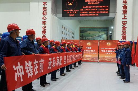 2020年11月13日,嘹亮的宣誓聲響徹廠房安裝間,這是劉家峽水電廠共產(chǎn)黨員突擊隊開展4號機(jī)組定子改造宣誓承諾的一幕。