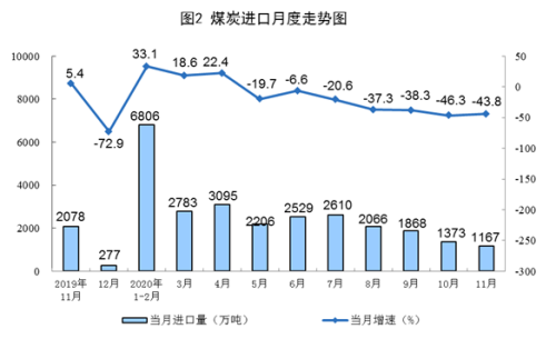 國家統計局發布11月份數據顯示,11月我國煤炭進口1167萬噸,同比下降43.8%。事實上,從今年5月份開始我國煤炭進口就大幅下降,來自國家統計局的煤炭進口月度走勢圖可以看到,5-11月我國煤炭進口量同比分別下降19.7%、6.6%、20.6%、37.3%、38.3%、46.3%、43.8%。煤炭進口大幅下滑在一定程度上導致煤炭供應緊張。我國煤炭進口量較大的幾個省份廣東廣西江蘇均在南方,進口的減少使得這些省份的電廠需要轉而從北方港口購煤,受地理及供需狀況影響,煤炭供應周期拉長,電廠保供壓力增大。