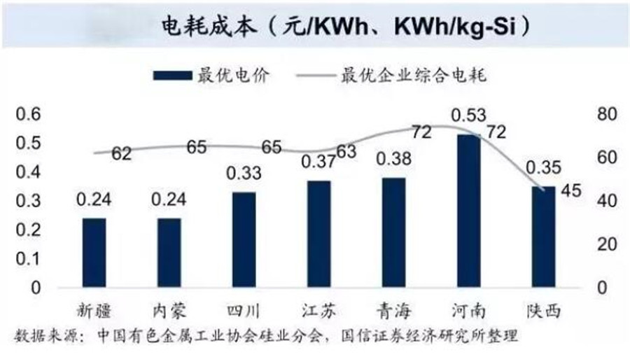 而通威除了后發(fā)優(yōu)勢之外,還具備明顯的成本優(yōu)勢。多晶硅生產(chǎn)成本中,能源成本、折舊成本、原料成本是主要部分,能源成本是重中之重。