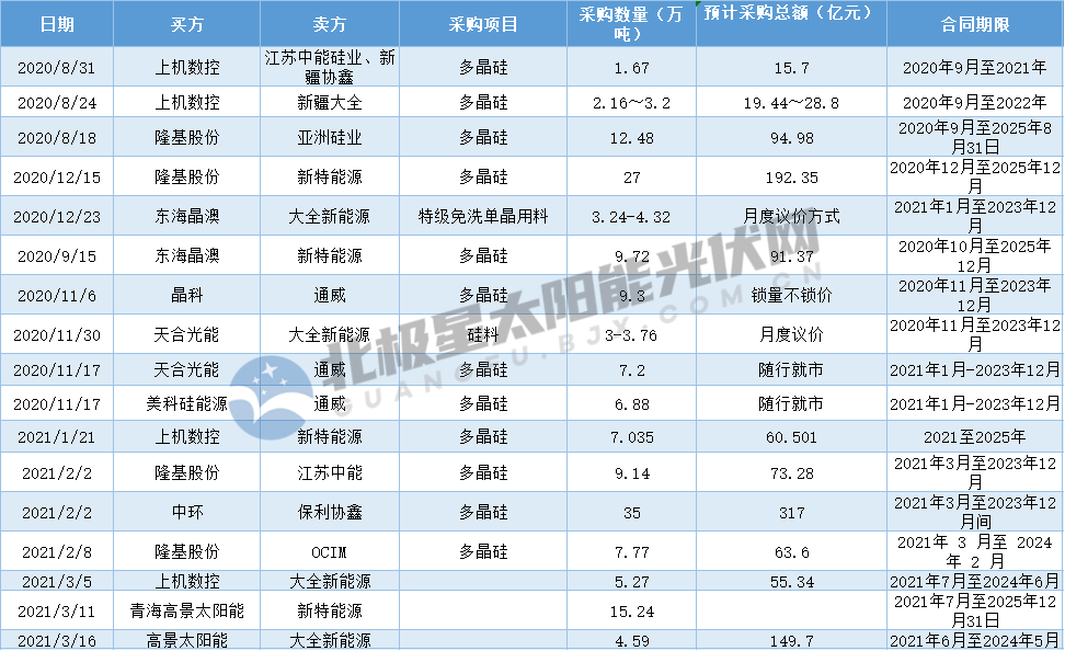 據(jù)悉,當(dāng)前硅料訂單以散單、急單為主,部分企業(yè)為保障供貨寧愿以高價(jià)鎖定硅料采購量。