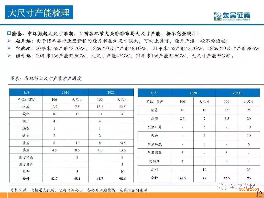 一體化、專(zhuān)業(yè)化電池廠商擴(kuò)產(chǎn)迅速,且多為大尺寸電池片
