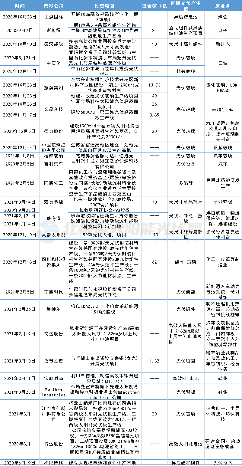 “碳中和”催生新機遇,光伏市場龐大需求潛力逐步顯現之時,一大批行業外名企及資本競相入場,以轉型、跨界、并購等各種途徑入局,試圖搭上中國光伏產業發展的快車。