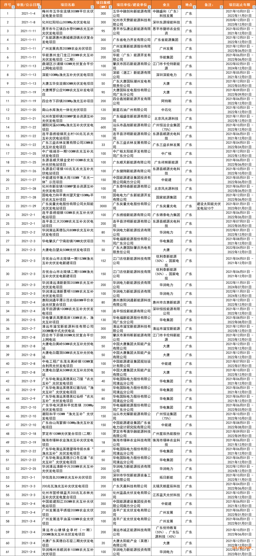 2021年開年,光伏電站投資熱度已經進入到白熱化的態勢,來自各大集團目標的定調,催生了這股投資熱潮的回歸。據光伏們從公開信息跟蹤到,截止目前廣東于3月新增共計72個、規模超13GW的地面電站項目備案,加上1-2月備案的10GW規模,廣東省已完成共計超23GW備案,儼然已經成為光伏電站投資的“紅海”。