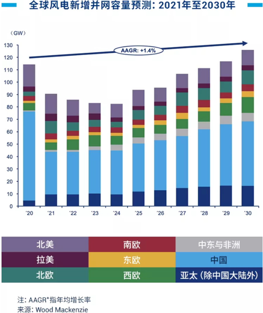 據伍德麥肯茲最新研究Global wind power market outlook update: Q1 2021(《2021年第一季度全球風電市場展望》),
