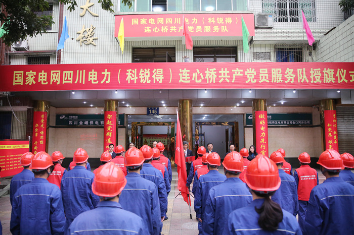 國網四川電力(科銳得)連心橋共產黨員服務隊首批隊伍共12人,是以共產黨員為骨干、依托基層一線班組所組建的先鋒團隊, 將率先模范承擔起電力應急搶修、重大活動保電、社會志愿服務等工作重任,堅持有呼必應、有難必幫,自覺履行社會責任,樹立責任央企形象。深入踐行人民電業為人民的企業宗旨,突出把旗幟鮮明講政治作為對服務隊第一位的要求,以開展“做好先行官,架起連心橋”為抓手,用實際行動踐行“你用電,我用心”的服務承諾。