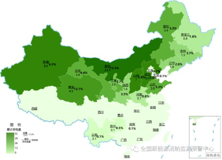 截至3月底各地區累計棄風電量(億千瓦時)及棄風率