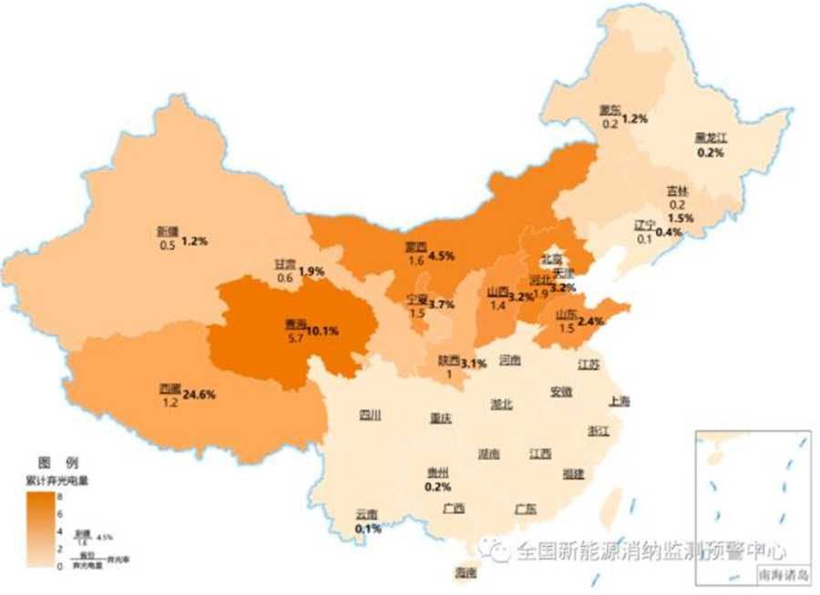 截至3月底各地區累計棄光電量(億千瓦時)及棄光率
