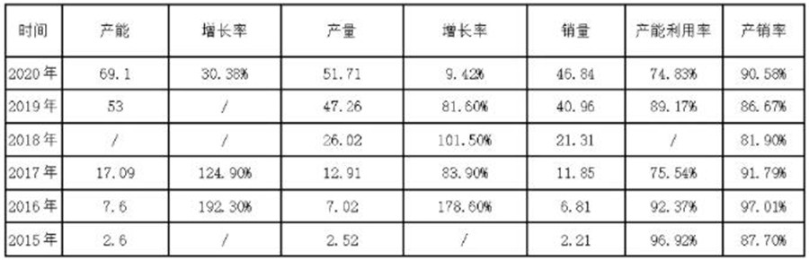 近年來,寧德時代產能增長非常迅速,2015年產能僅為2.6GWh,到2020年,這一數據增長到69.1GWh,不過產能利用率由90%下降至74.83%,應該是受疫情影響。