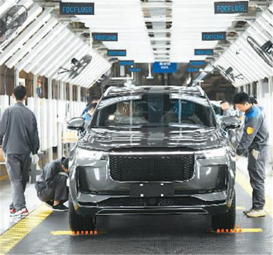 4月25日,理想汽車江蘇常州制造基地內的智能化汽車生產線上,工人正在生產裝配新能源汽車。 夏晨希 攝(人民視覺)