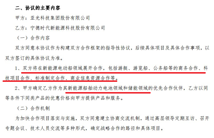 5月12日晚間,亞光科技公告,公司與寧德時代(300750)簽署合作協議,雙方將在新能源電動船領域展開合作,包括游艇、游覽船、公務船等的商務合作、科技項目合作、標準制定合作、商業信息資源合作等。
