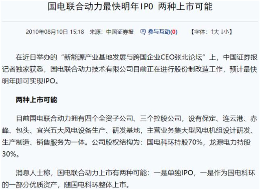 2010年,中國證券報(bào)曾發(fā)布獨(dú)家消息稱,聯(lián)合動(dòng)力正在進(jìn)行股份制改造工作,最快明年即可實(shí)現(xiàn)IPO。