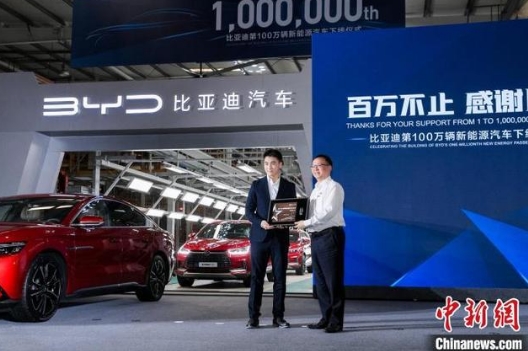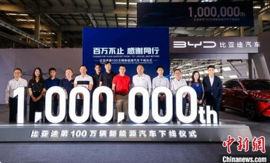 比亞迪第100萬輛新能源汽車19日在深圳下線,比亞迪也同時成為中國首家完成一百萬輛新能源乘用車下線的車企。