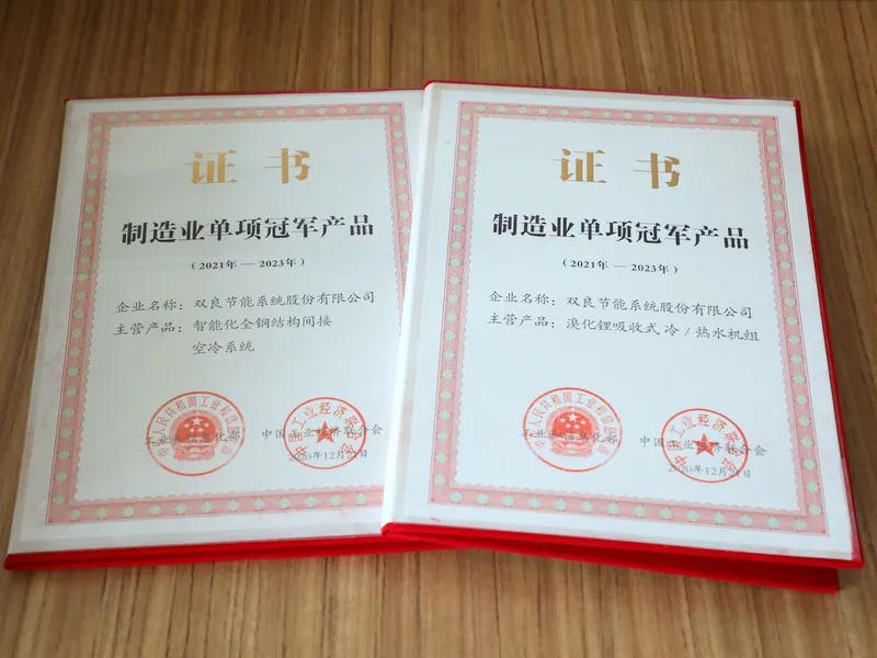 兩本中國(guó)制造業(yè)單項(xiàng)冠軍產(chǎn)品證書