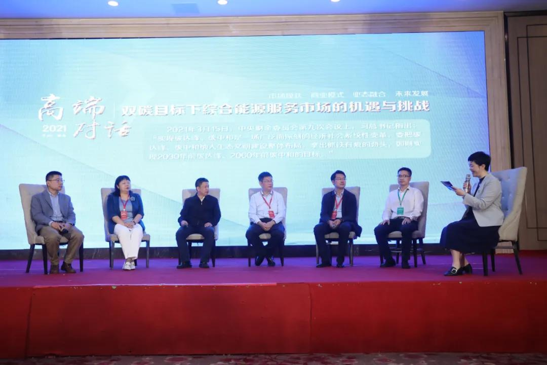 大會同期開展了以“雙碳目標下綜合能源服務市場的機遇與挑戰” 為主題的高端對話,此環節特別邀請了不同類型市場主體的嘉賓代表針對四方面進行互動討論,即如何理解 “碳達峰、碳中和是一場廣泛而深刻的經濟社會系統性變革”;“抓鐵有痕”的含義;“綜合能源”與“新型電力系統的關系”及從綜合能源服務業務價值提升和商業價值閉環的角度談談看法等,深度剖析了3060背景下綜合能源服務企業發展方向及市場前景,給在正在布局綜合能源服務的從業者帶來了新思路、新想法,更多的是堅定了我們發展的信心。